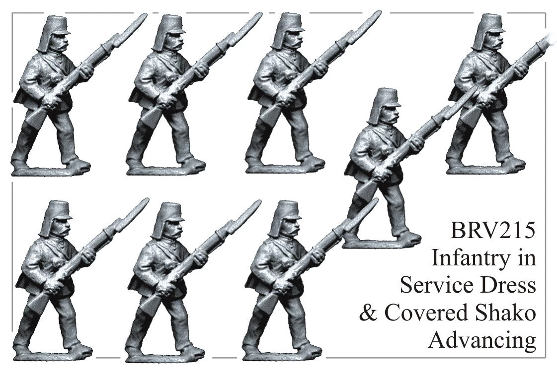 BRV215 British Infantry In Service Dress And Covered Shako Advancing