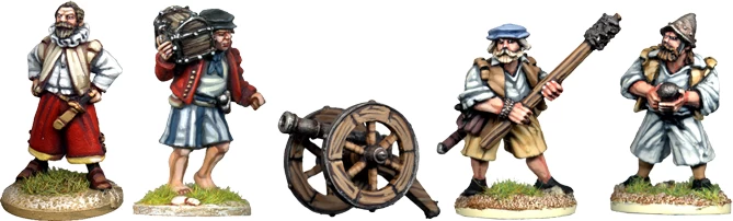 4 miniatures and small gun.Supplied unpainted.